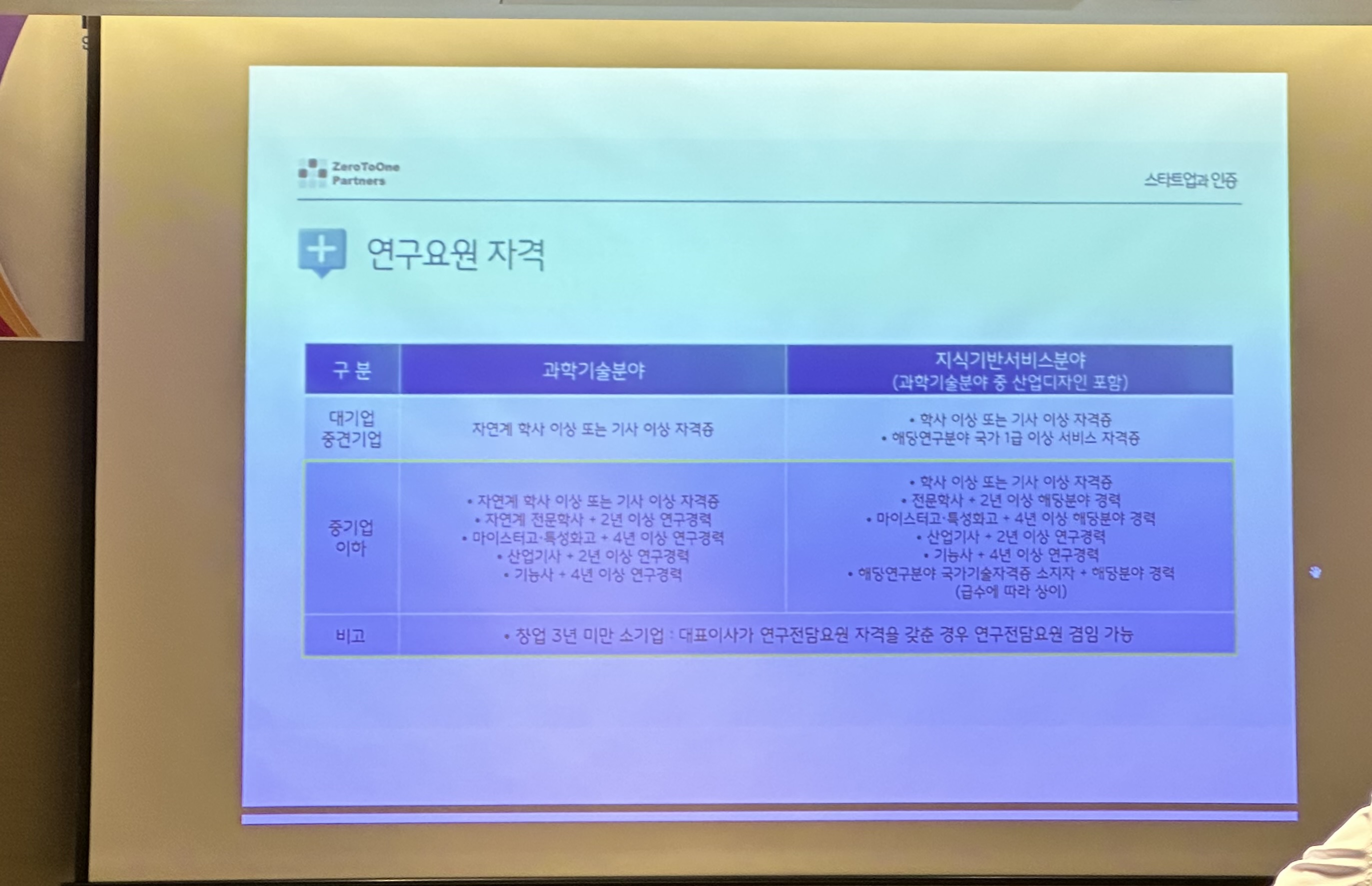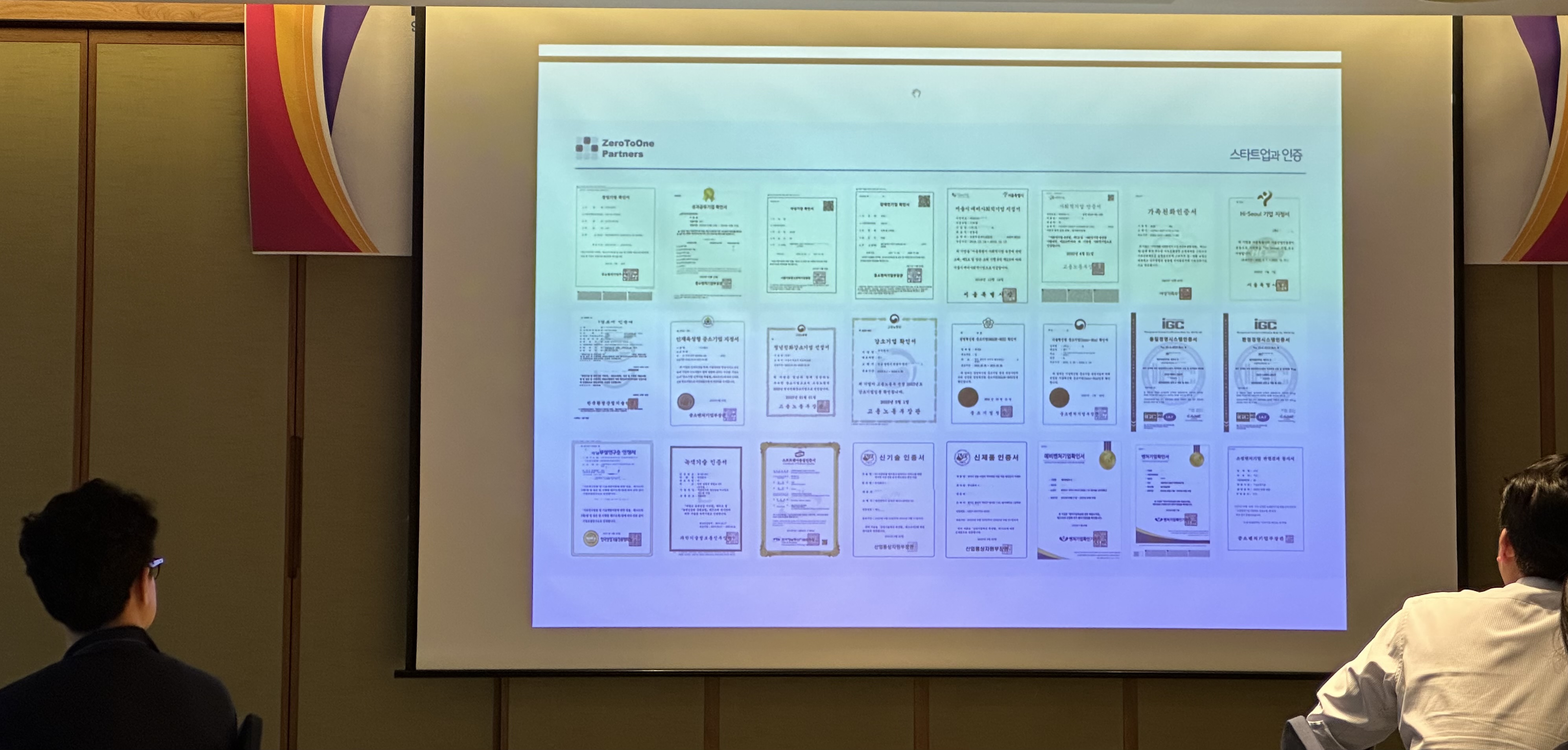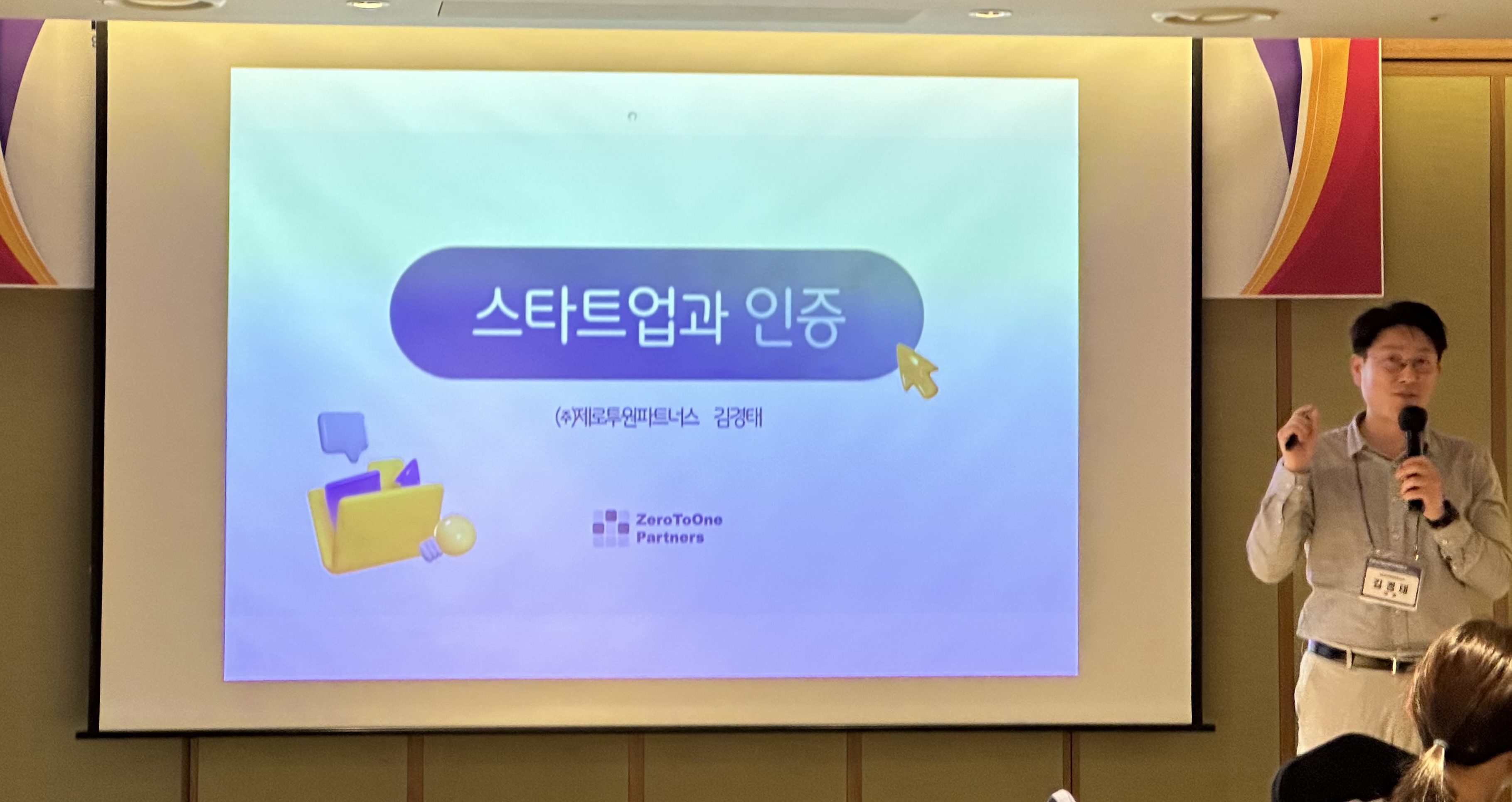 세번째 세션에서는 제로투원파트너스의 김경태 대표님께서 스타트업과 인증에 관련된 다양한 내용들이 다루셨습니다.