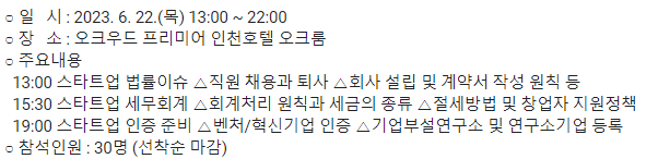 인천서구강소특구 이노폴리스 스타트업 세미나 참석_06.22 수