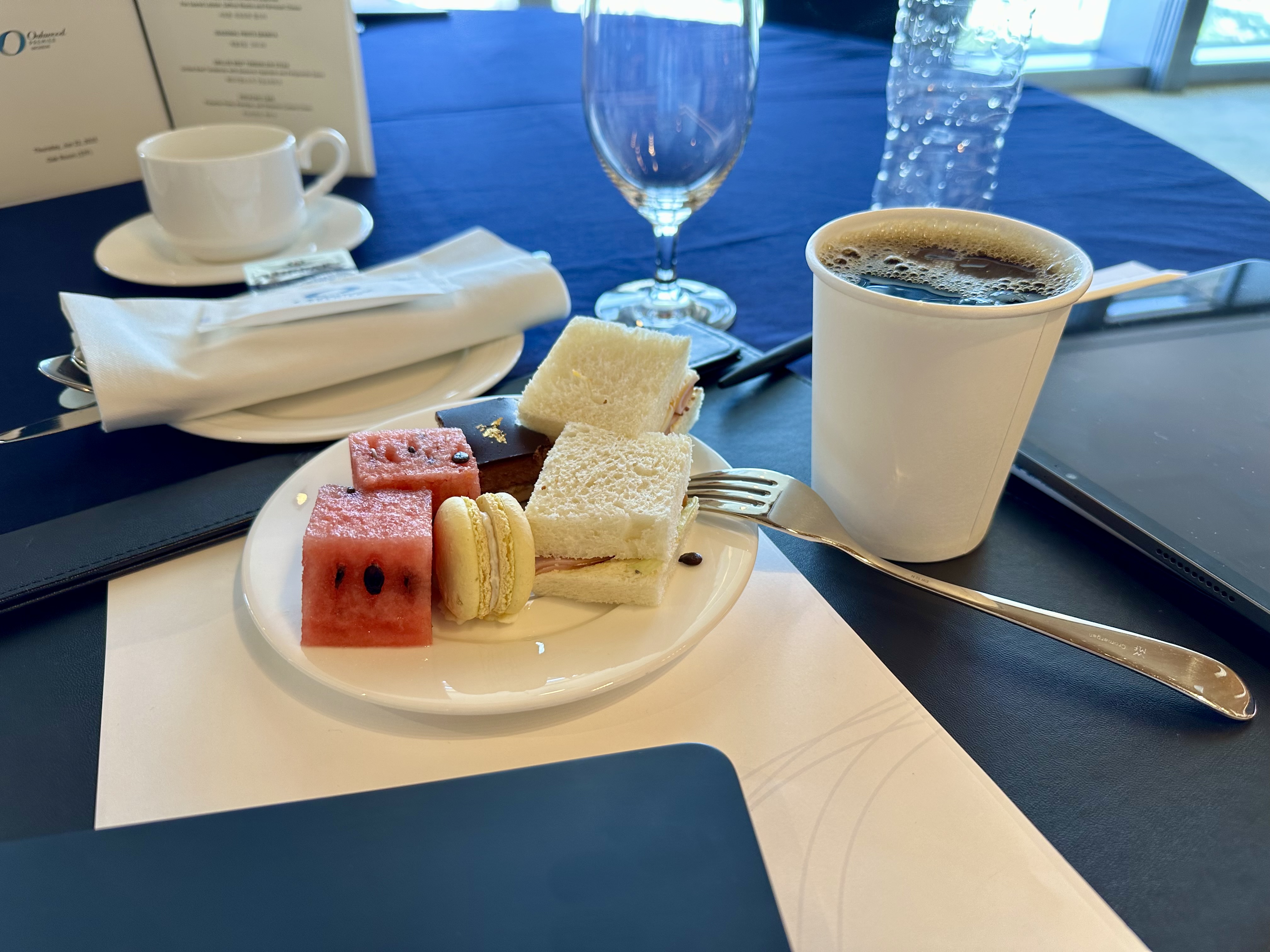 세미나 주최 측이 이렇게 다과와 필기구를 훌륭하게 준비해두었습니다. 참가자로서는 좋은 대접을 받는 느낌을 받았습니다.