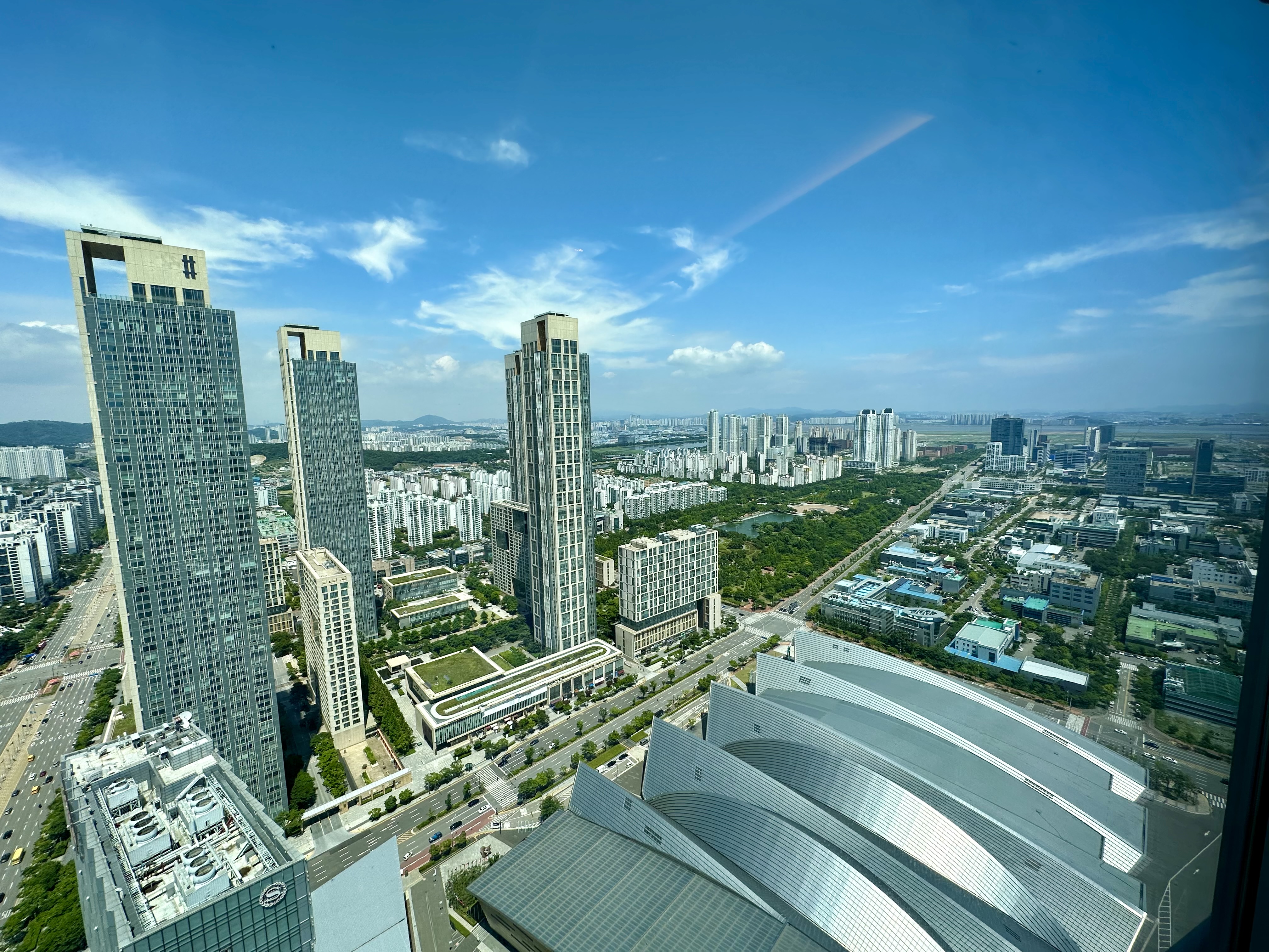 세미나가 진행된 호텔 37층 오크룸에서 내려다본 인천 송도의 전경입니다. 날씨가 확창해서 전망이 너무 좋았습니다.